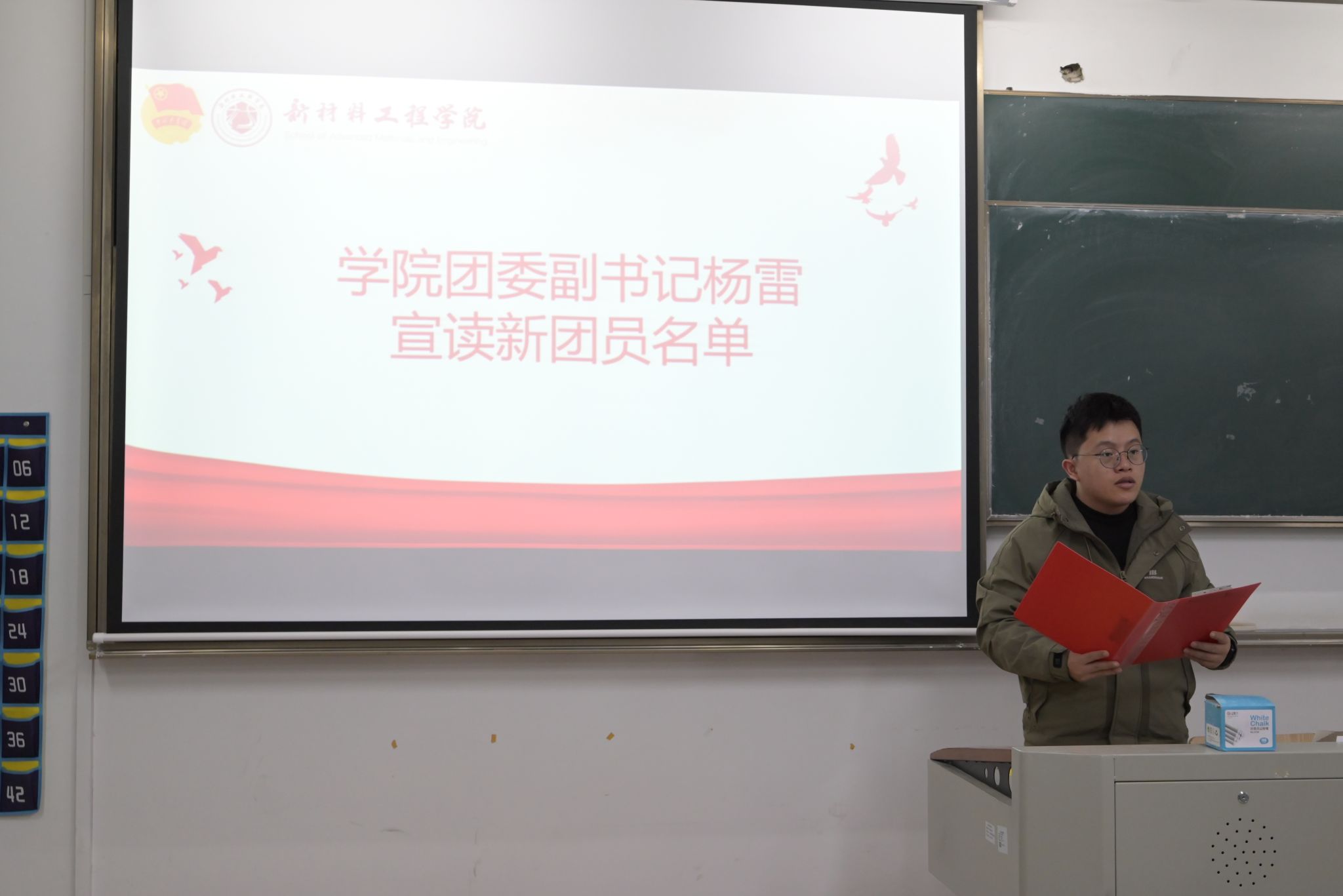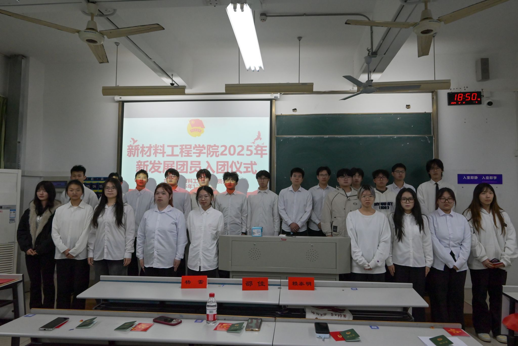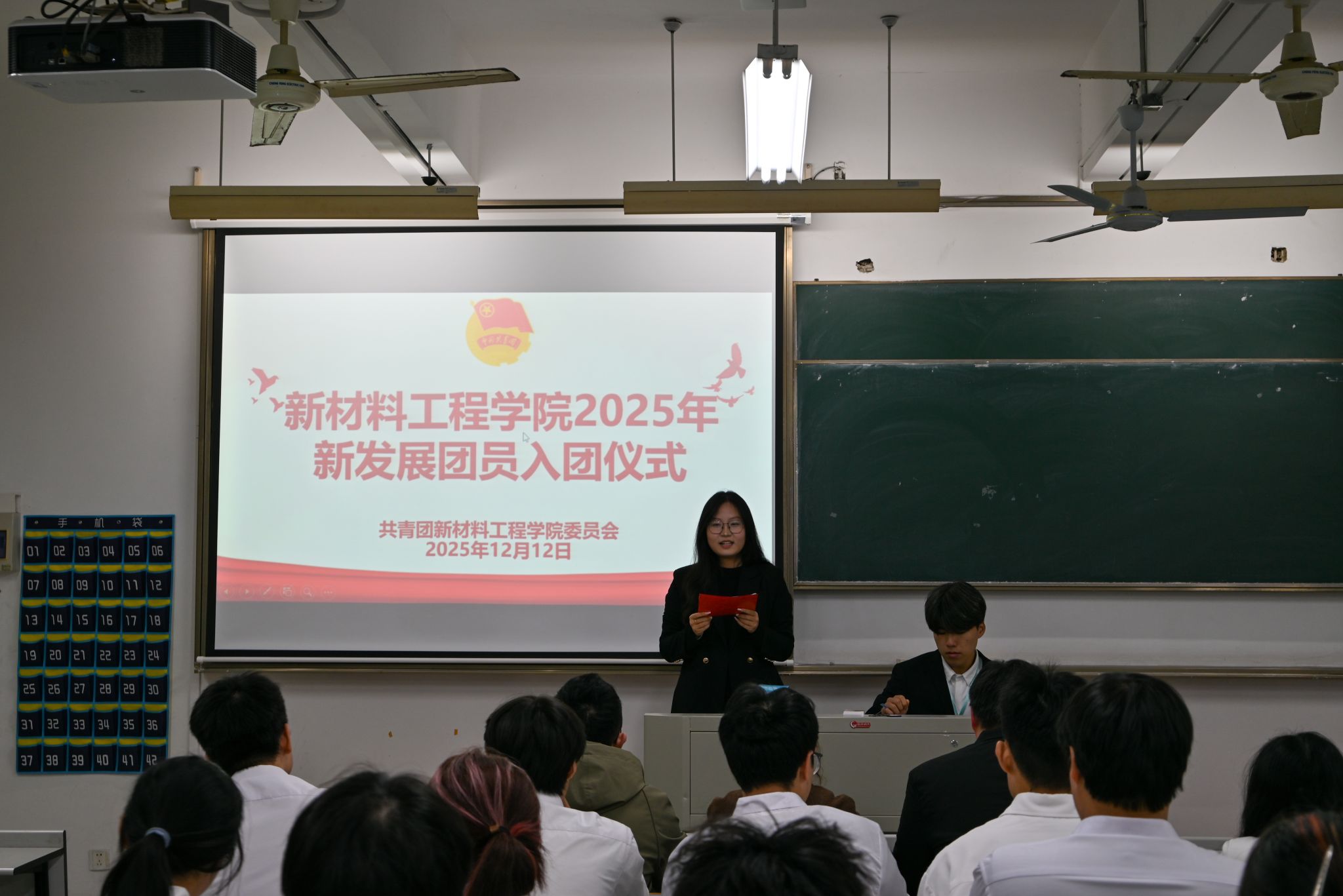 为加强团员思想引领,凝聚青年力量,激励新团员坚定理想信念、勇担时代使命,新材料工程学院于12月12日在教二B214举行2025-2026学年第一学期新发展团员入团仪式。学院团委书记邵佳、学院团委副书记杨雷、各学生组织代表及全体新发展团员共同参加了此次活动。