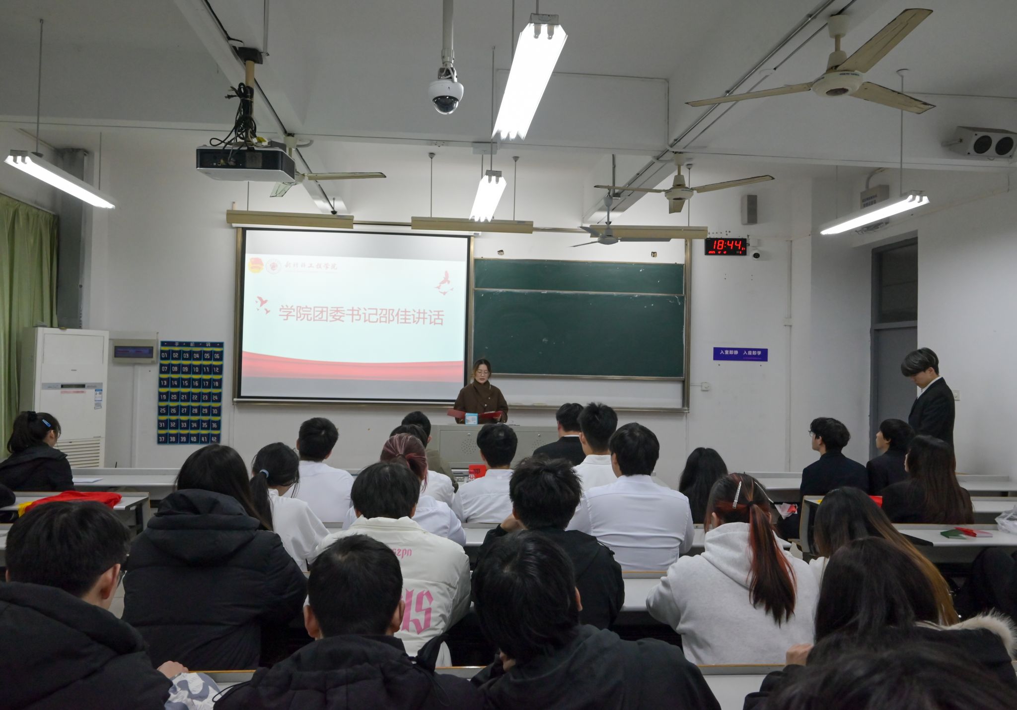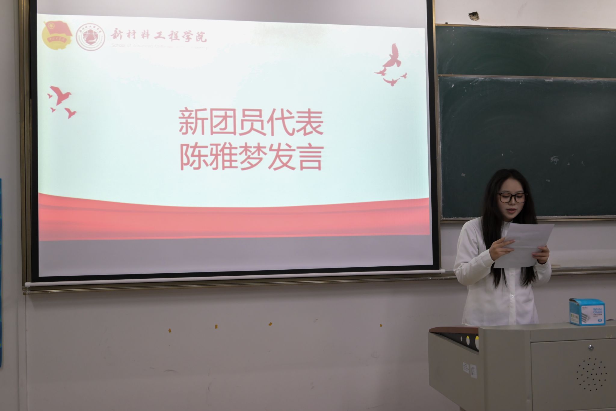 学院团委书记邵佳向全体新团员表示祝贺并提出殷切期望。她强调,成为一名共青团员意味着更高的要求和更重的责任,希望大家坚定理想信念、加强理论学习、锤炼品德修为,在学习和工作中走在前列、干在实处,努力成长为有理想、敢担当、能吃苦、肯奋斗的新时代好青年。她特别强调,青年阶段是价值观形成的关键期,希望新团员们从入团这一刻起,就把“廉洁”二字铭刻于心,明辨是非、恪守正道,自觉抵制不良风气,做到心有所畏、言有所戒、行有所止。要以入团为起点,系好人生的第一粒扣子,始终保持清澈纯粹的政治本色,在青春的赛道上跑出不负时代、不负韶华的最好成绩。