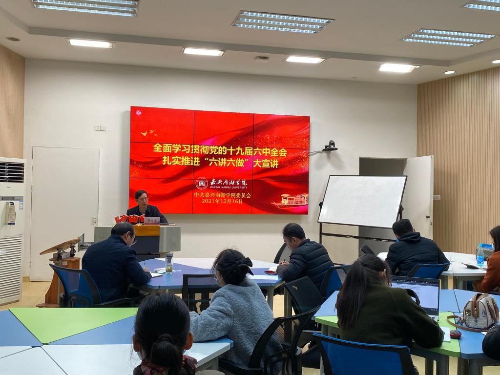 12月16日下午,校党委委员、纪委书记蒋文波来我院作党的十九届六中全会精神宣讲。我院全体教职工参加宣讲会,宣讲会由学院党委副书记赵惠明主持。