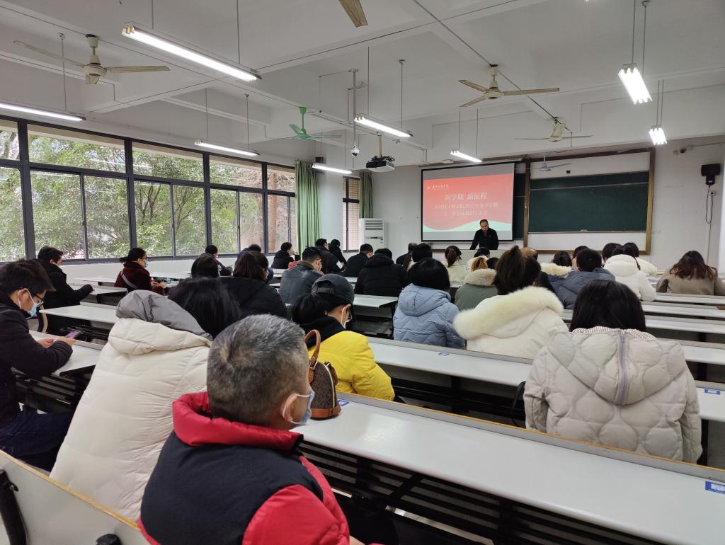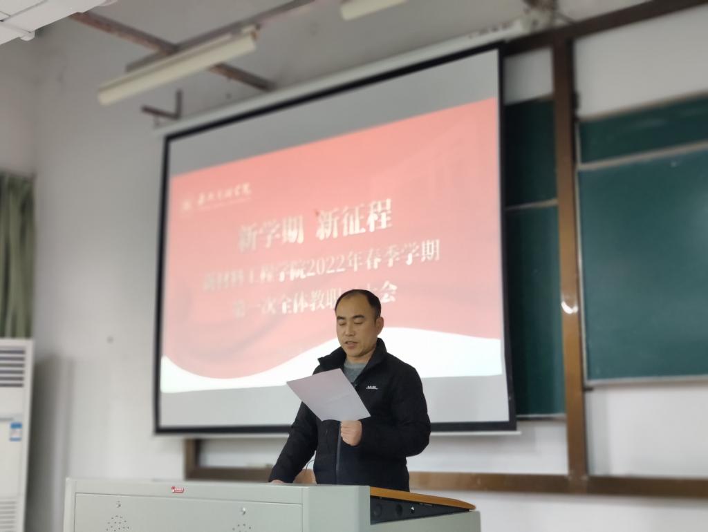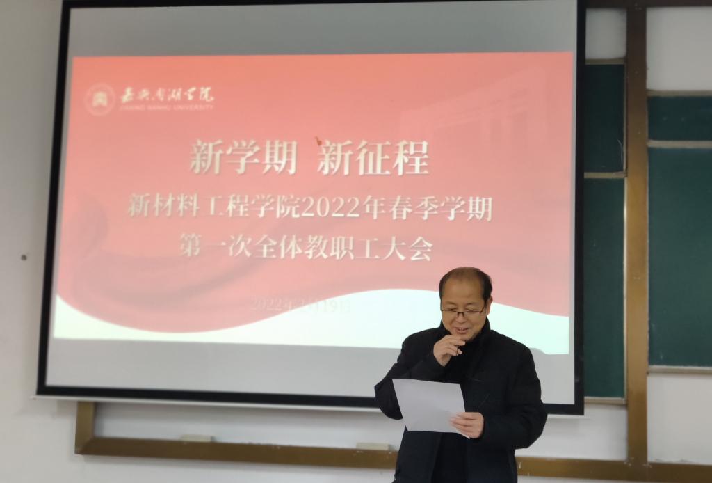 2022年2月19日上午,我院召开2022年春季学期第一次全体教职工大会。学院党委副书记赵惠明主持会议,副院长孙诗清布置新学期重点工作,学院全体老师参加。