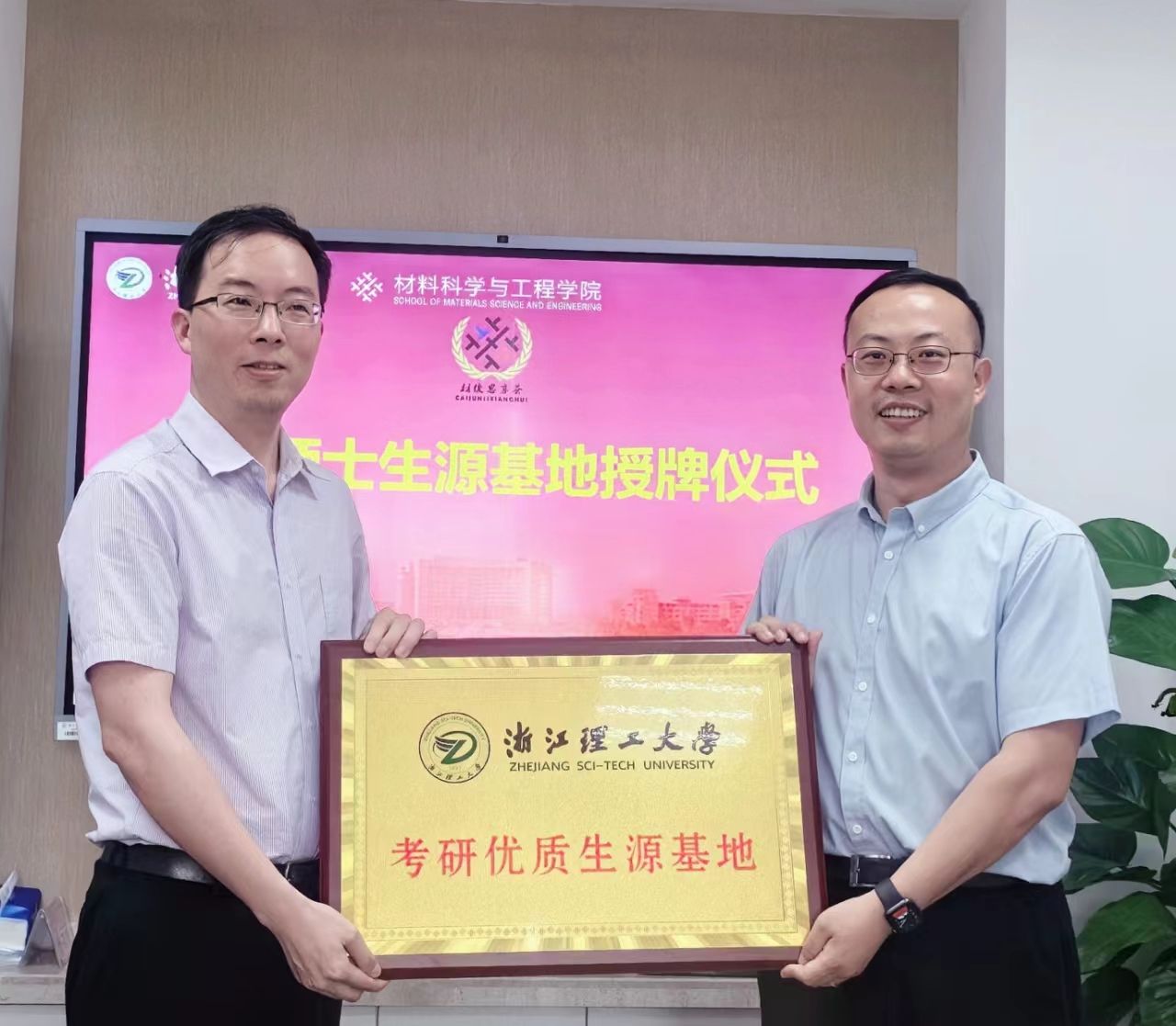 5月30日下午,新材料工程学院党委书记郝涛受邀带队赴浙江理工大学交流,出席了材料科学与工程学院“考研优质生源基地”的授牌仪式。