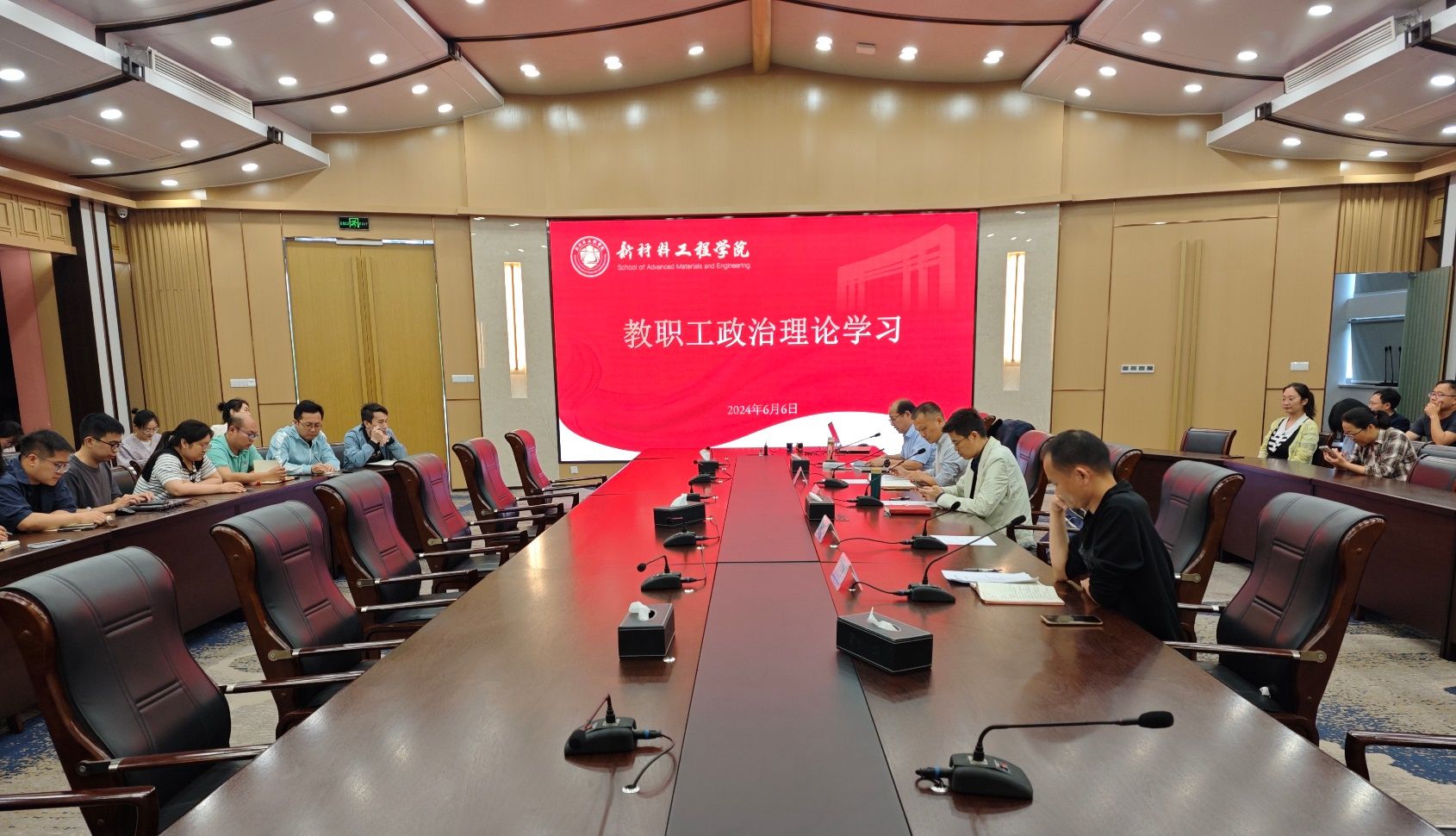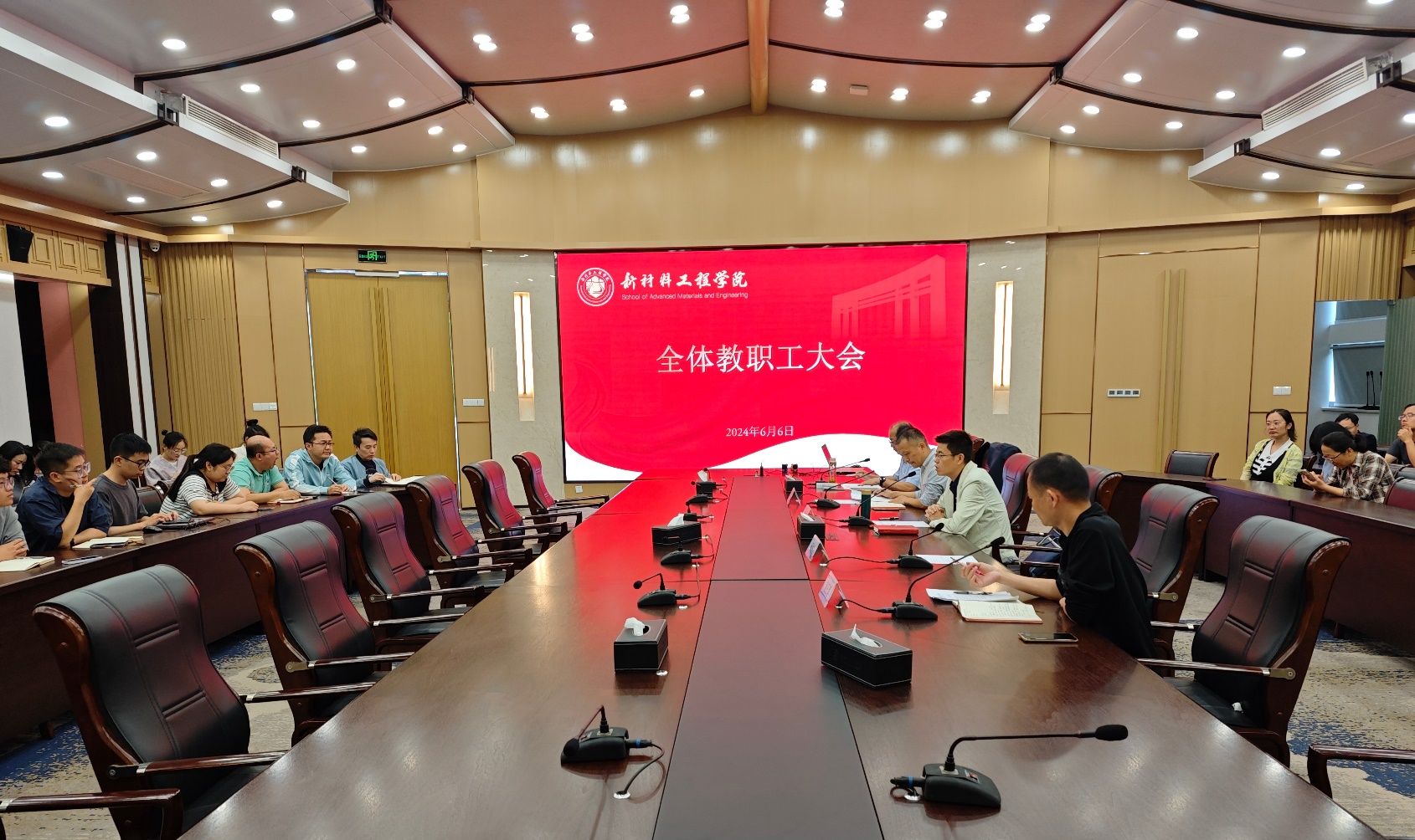 6月6日下午,新材料工程学院在第六报告厅召开全体教职工大会。学院副院长解春松、党委副书记赵正喜、党委组织员赵惠明及全体教职工参会。会议由学院党委书记郝涛主持。