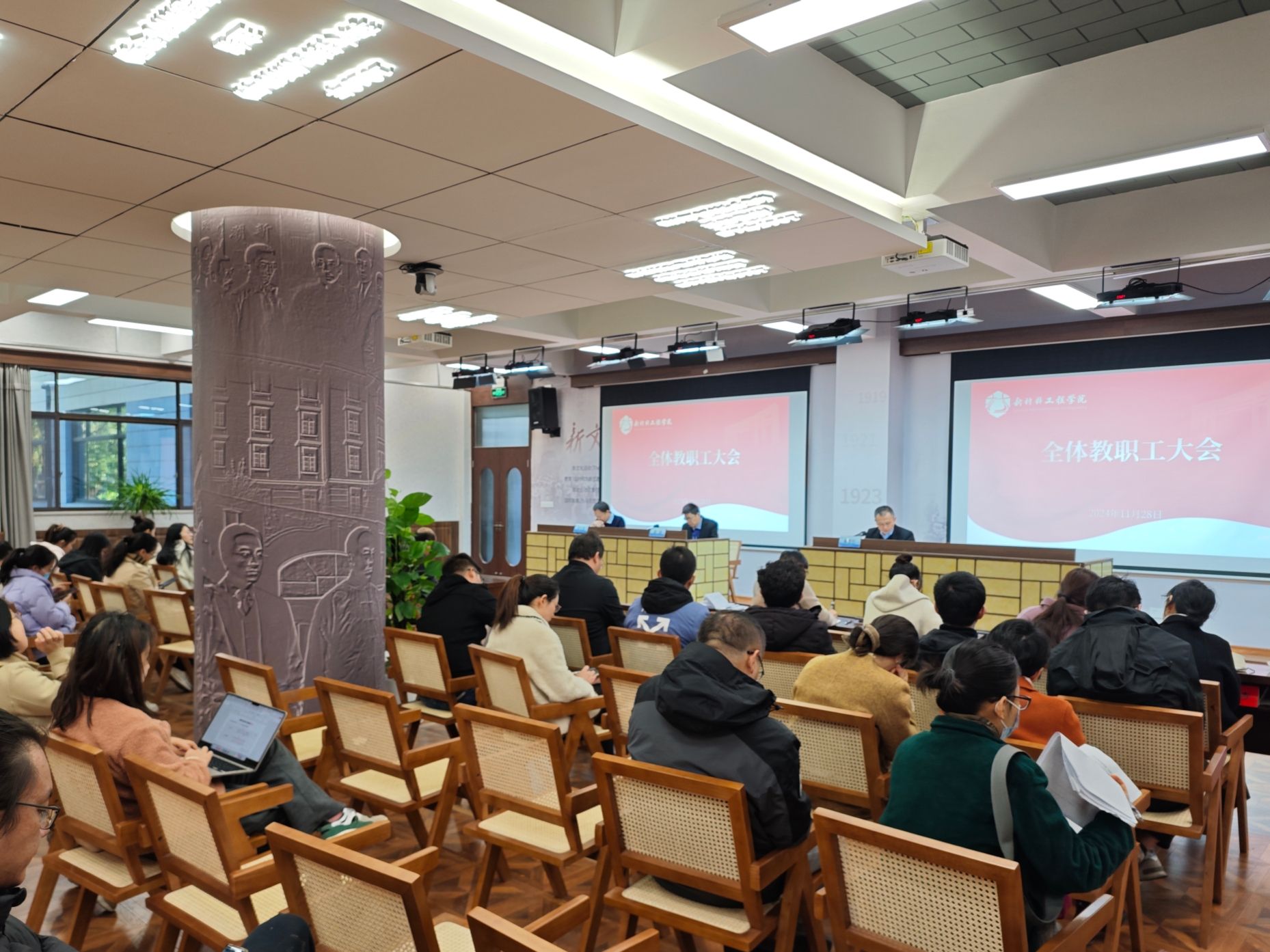 11月28日下午,新材料工程学院在图书馆报告厅召开全体教职工大会。学院院长解春松、党委副书记赵正喜及全体教职工参会。会议由学院党委书记郝涛主持。